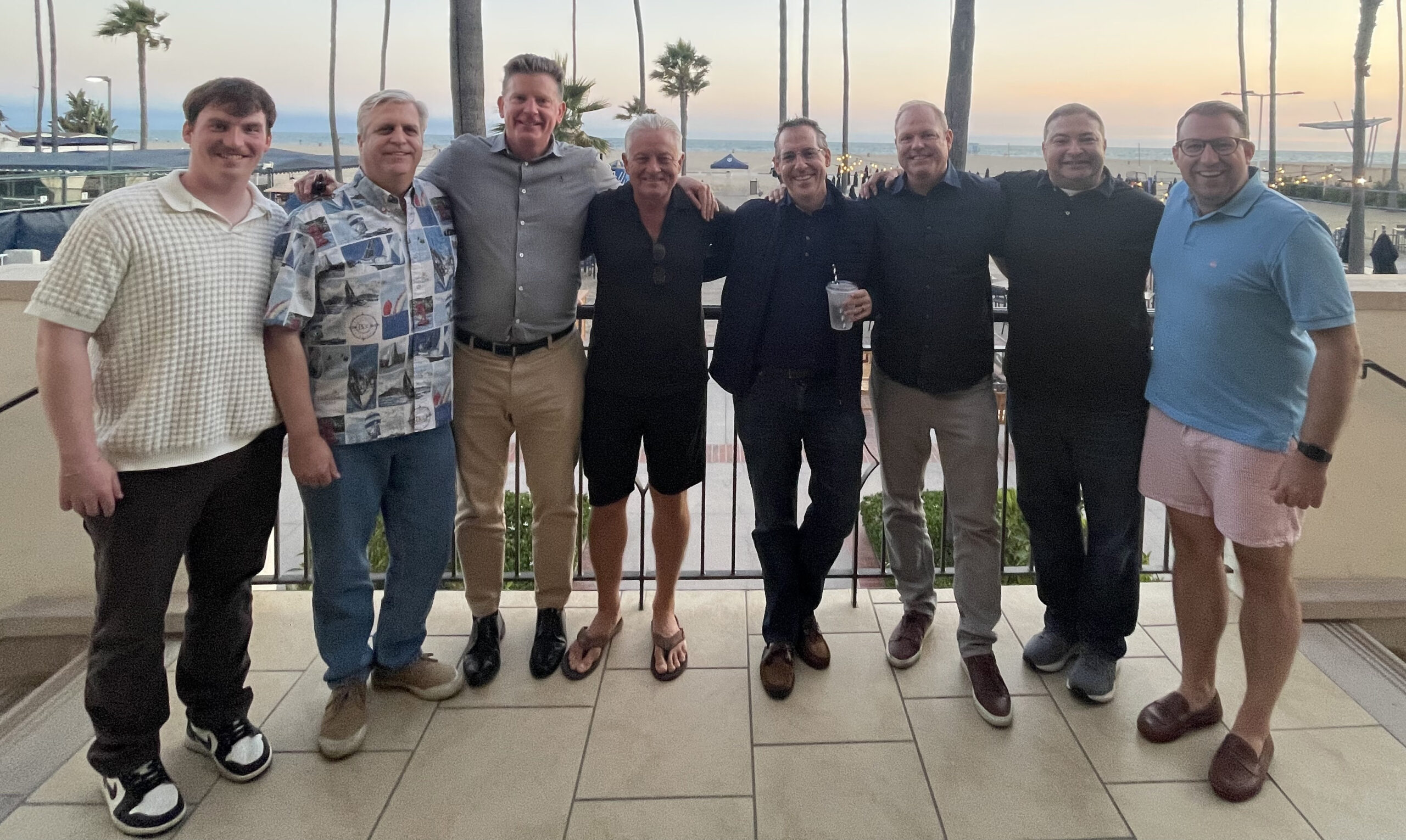 Corp Board meeting with National team of Expansion Jonathan Club Santa Monica July 2025. (From left) Jakob Davis ’19 – PKP Director of Expansion Indiana State, Brian Miller ’91, Peter McCormick ’91 – Corp Board President, John Henebry ’84, Karl Brensike ’96, Chris Kirk ’96, Paul Mendez ’96, Ben Sigler ’10 – Director of Chapter Operations Bowling Green